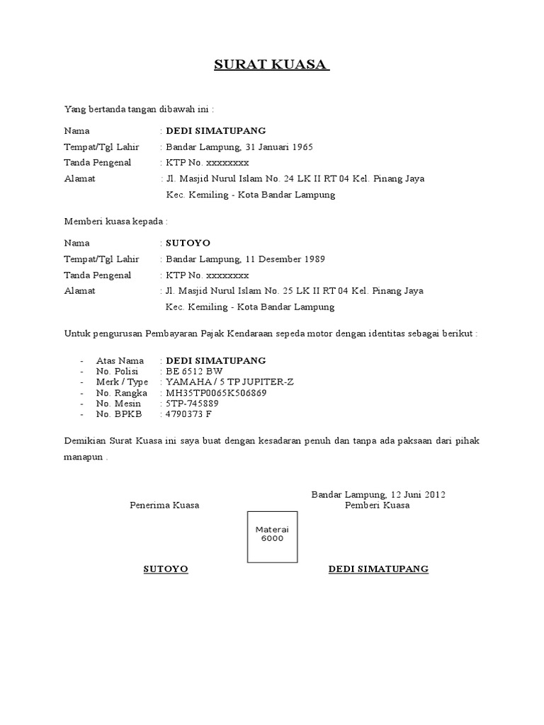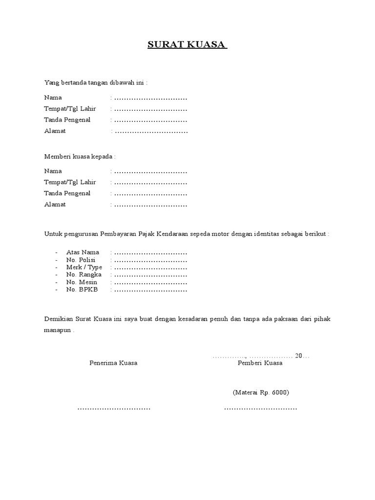 Contoh surat kuasa pengurusan pajak mobil contoh seputar. Michael puji faris tempat/tgl lahir : Syarat bayar pajak motor milik perusahaan. The collection that consisting of chosen picture and the best amongst others. Ditunjuk sebagai seorang kuasa dengan surat kuasa khusus.