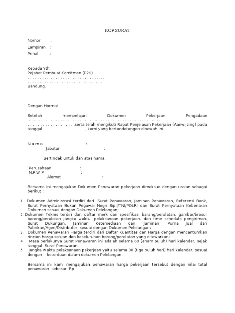 Jadwal Pelaksanaan Pelelangan from s1.studylibid.com Penjelasan lengkap seputar contoh surat penawaran yang baik dan benar. Berikut 7 contoh surat penawaran barang ketika menjalankan bisnis. Apa itu surat penawaran barang? Pada umumnya, surat penawaran ini berbentuk secara resmi. Batman ac solo jl raya baki solo km fungsi utama dari surat penawaran yakni untuk melakukan penawaran barang untuk para calon pembeli. Dalam dunia bisnis, penawaran akan selalu ada antara pihak satu dengan pihak lainnya. Adapun surat niaga merupakan salah satu bentuk surat resmi. Pengertian, dan contohnya, semoga artikel ini bermanfaat bagi anda semuanya.